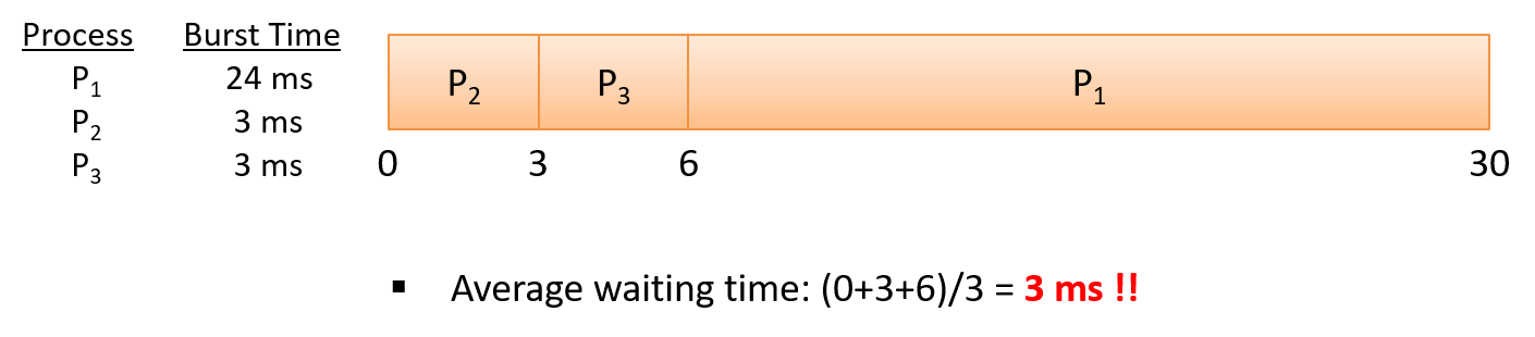 - CPU burst가 가장 짧은 프로세스부터 먼저 처리한다.