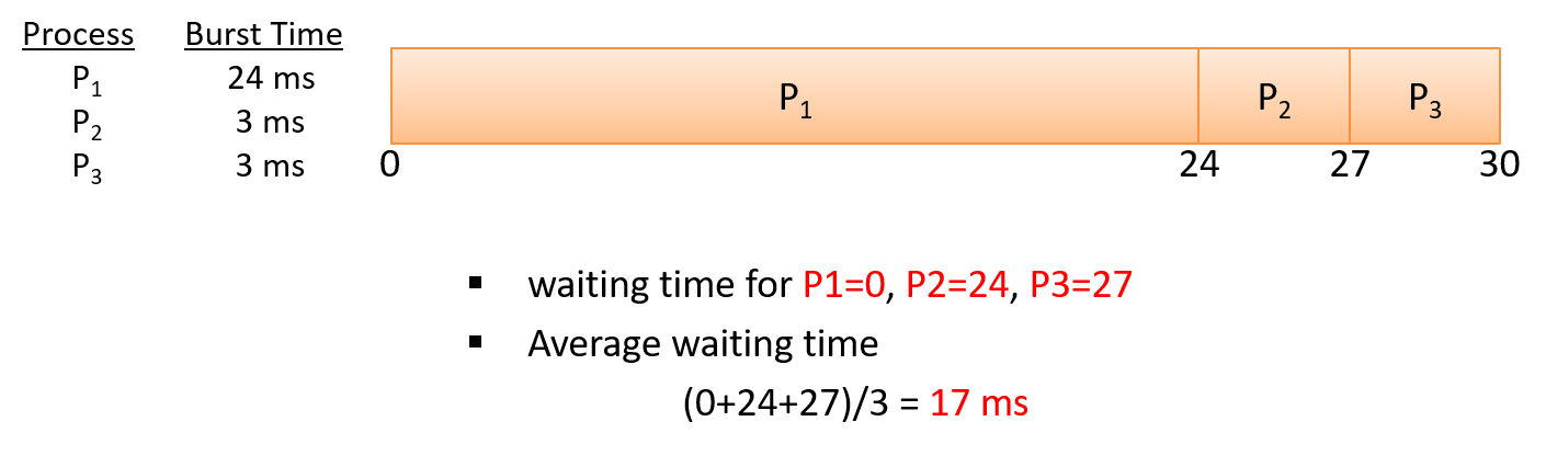 - FCFS 스케줄링은 동등한 우선순위를 가지고 있는 nonpreemptive 한 round-robin 스케줄링이라고 할 수 있다.