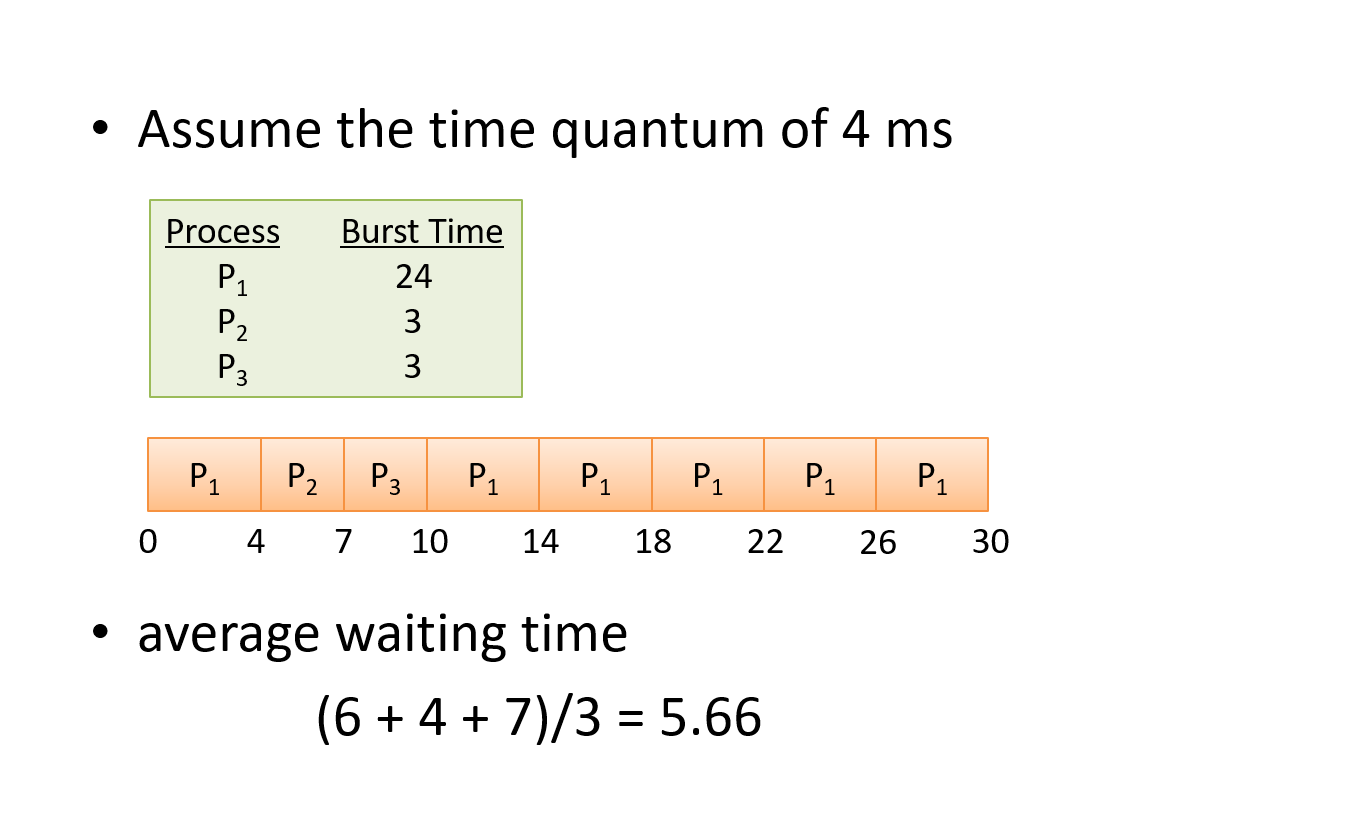 - Time quantum이 매우 길다면(무한하다면), FCFS 스케줄링이다.