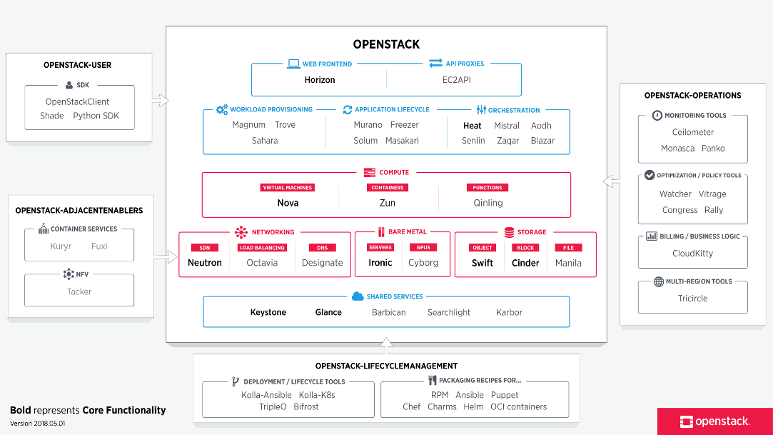 OpenStack은 기업과 통신회사를 포함한 다양한 사용 사례들을 다루는 사설 및 공인 클라우드 플랫폼을 제공하는 소프트웨어 패키지입니다. 주요 초점은 IaaS(Infrastructure as a Service)와 IaaS위에서 빌드된 추가적인 서비스들입니다.