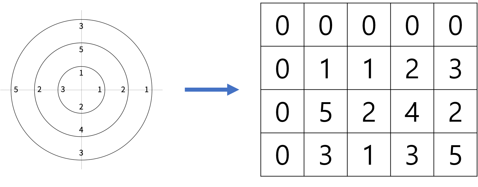 원판을 행렬로 나타낸 그림