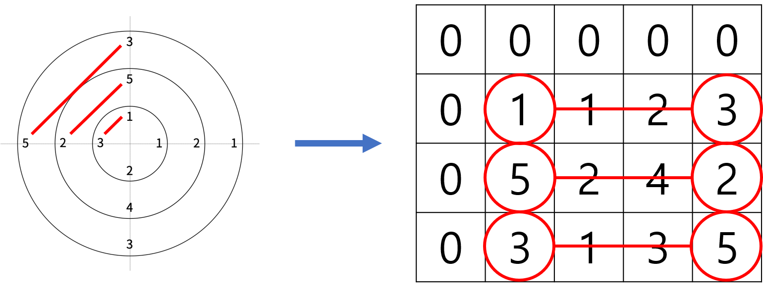 문제에서 주어진 원판을 행렬로 표현하면 다음과 같다.