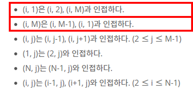 따라서 BFS를 통해 인접하면서 같은 숫자를 찾기 위해서는 이 숨은 조건 또한 포함해야 한다.