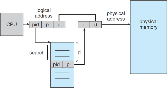 실제 물리 주소를 얻기 위해 <프로세스 ID, 페이지 번호>가 일치하는 항목을 찾고, 이때의 인덱스가 실제 메모리의 프레임 번호가 된다.