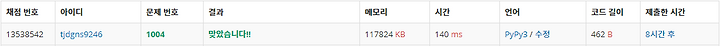 알고리즘/백준 [백준 1004] 어린 왕자 최성훈 2019. 6. 19. 02:18 반응형 문제 보기풀이풀이 예전에 오답처리를 2번 받고나서 귀찮아서 안 푼 문제인 것 같다.문제 해결을 위한 방법은 매우 간단하다.어린 왕자가 출발점에서부터 도착점까지 최소한의 행성계의 이탈/진입 횟수를 측정하는 것인데, 이는 한 가지의 조건만 안다면 해결할 수 있다.핵심 조건은 각 행성계를 기준으로, 출발점과 도착점 서로 행성계의 안팎으로 다른 위치에 있어야 한다는 것이다.위의 그림에 해당하는 조건을 만족하는 행성계의 갯수를 세면 정답이다.소스코드에서 위의 조건에 해당하는 조건문은 19번째 줄이다.점과 점 사이의 거리를 측정하기 위해서 원래 sqrt를 써야하지만, 나는 sqrt를 쓰지 않는 대신 행성계의 반지름의 길이를 제곱해서 비교하였다. 풀이코드코드 12345678910111213141516171819202122import sys t = int(sys.stdin.readline())for _ in range(t): x1, y1, x2, y2 = map(int, sys.stdin.readline().split()) n = int(sys.stdin.readline()) planet_list = list() result = set() for _ in range(n): planet_list.append(list(map(int, sys.stdin.readline().split()))) count = 0 for x, y, r in planet_list: d1 = (x1 - x)**2 + (y1 - y)**2 d2 = (x2 - x)**2 + (y2 - y)**2 rr = r**2 if d1 < rr < d2 or d2 < rr < d1: count += 1 print(count) Colored by Color Scriptercs 코드 반응형 저작자표시 (새창열림)